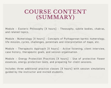 Each course also includes an exclusive Practical Training module focused on applying the specific technique (Flower Essences, Dowsing or Numerology), ensuring a complete and guided experience.